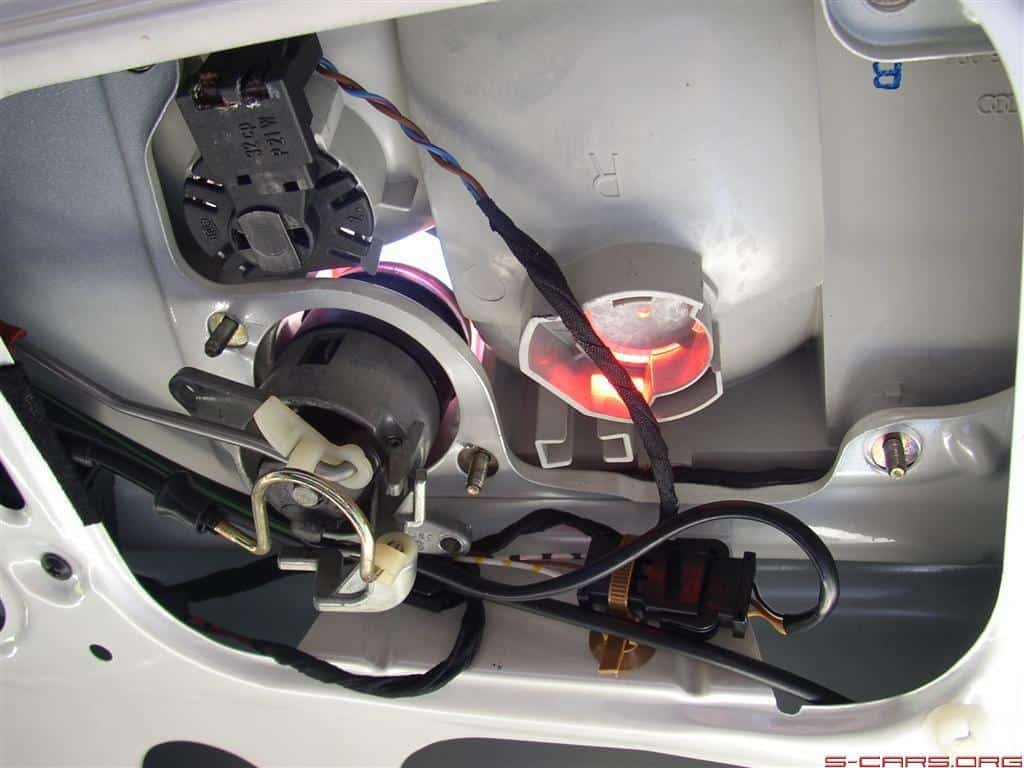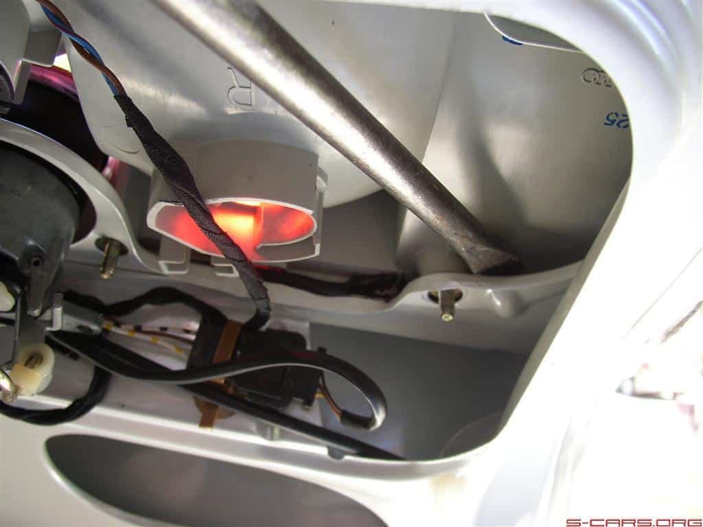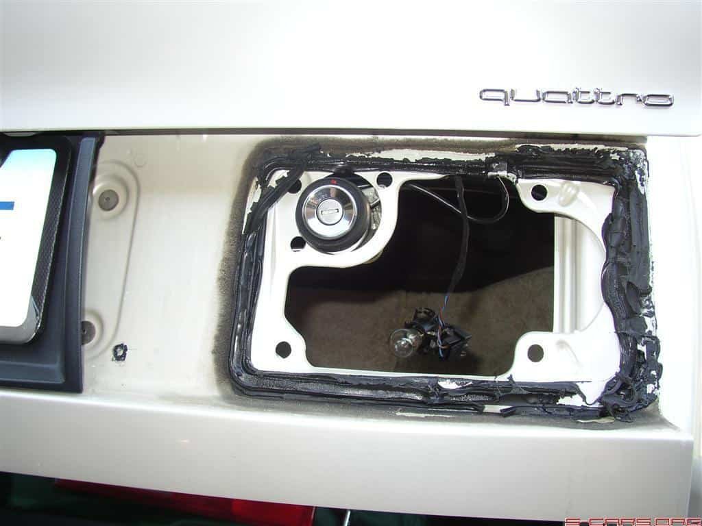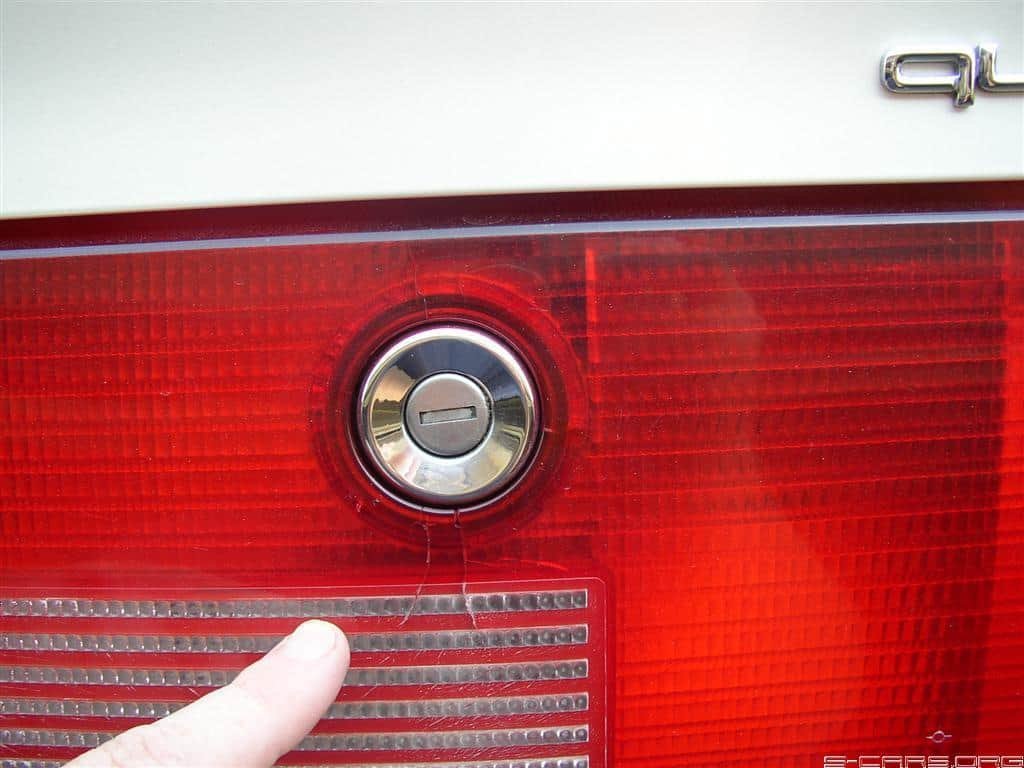 One area that seems to be a common trouble spot as these cars get older is the plastic tail light lens that surrounds the trunk lock cylinder. The lens cracks and you start getting a tail light lens that fills with water. Replacement is not as hard as you might think. We’ve posted some photos and text showing the process.