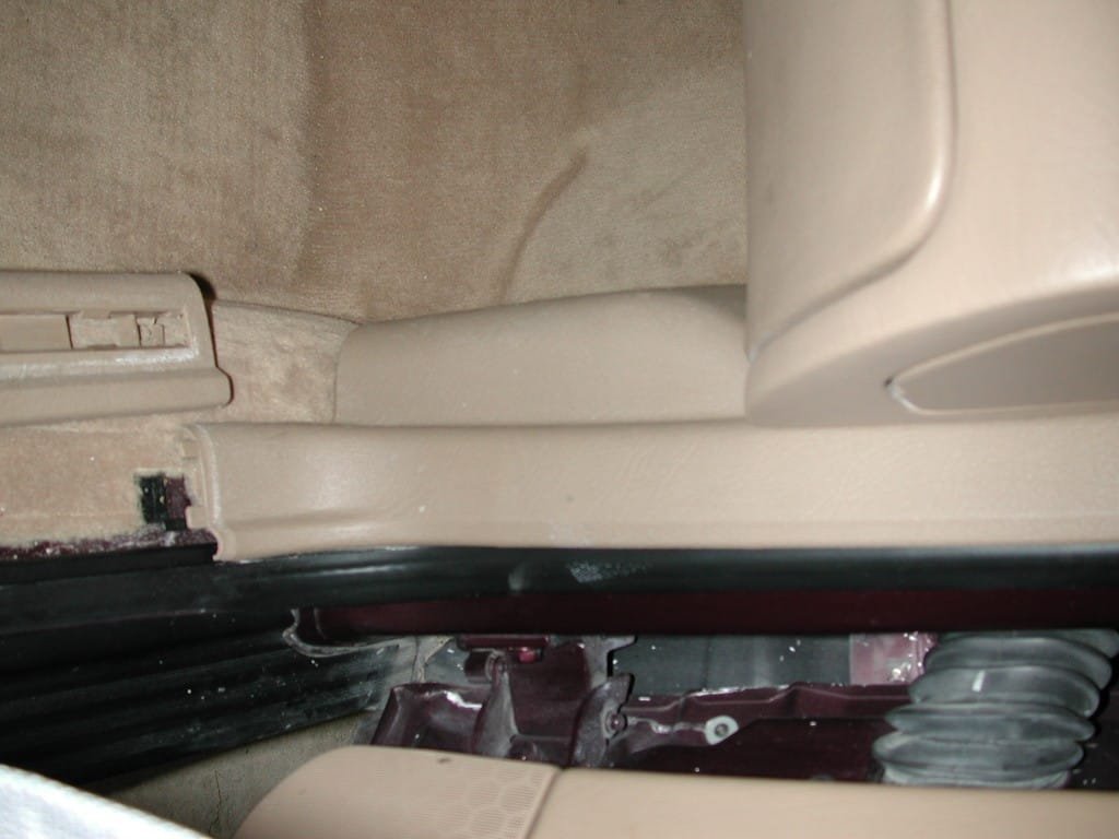 - STEP 4: Remove the floor mat. Pull back on the carpet as shown. Note: the carpet and padding will need to be carefully cut along the seam that runs along the transmission tunnel. Beneath the carpet will be two plastic covers held in place with two Phillips screws. Remove the screws. Remove the top plastic cover by pulling out and down (this piece has two tabs at the top that fit into plastic slots). Remove the lower cover.