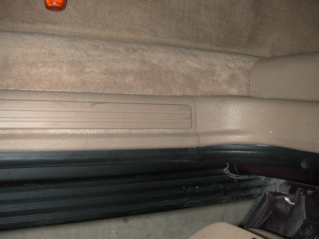 - STEP 3: Move the door sill trim so that it clears the edge of the kick panel trim. Pry open the small circular plastic cover (not shown in photo) on the kick panel and remove the Phillips screw. Then pull the kick panel out and away from the door jamb (where it is held in place with metal clips.
